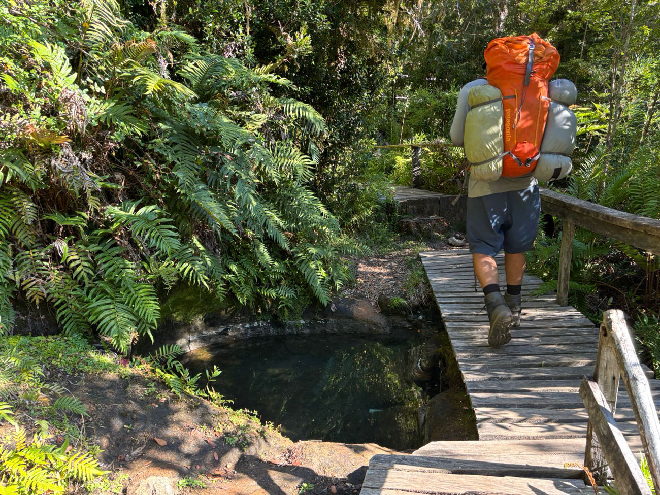 We continue our journey on foot, descending through a lush forest valley shaped by rivers and ancient volcanic flows. As the vegetation thickens, we arrive at a remote natural hot spring—a perfect opportunity to relax our muscles in warm, mineral-rich waters while surrounded by nature.