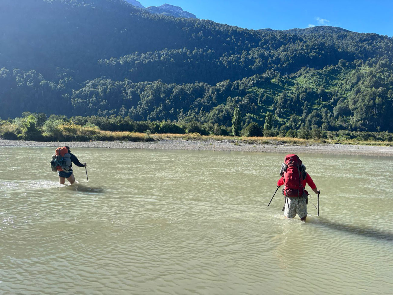 After breakfast, we set off on foot and officially begin our Andean crossing. The trail winds through lush temperate rainforest, crossing streams and alpine meadows as we gradually gain altitude. The sound of waterfalls and views of glaciers accompany us as we hike deeper into the Andes.